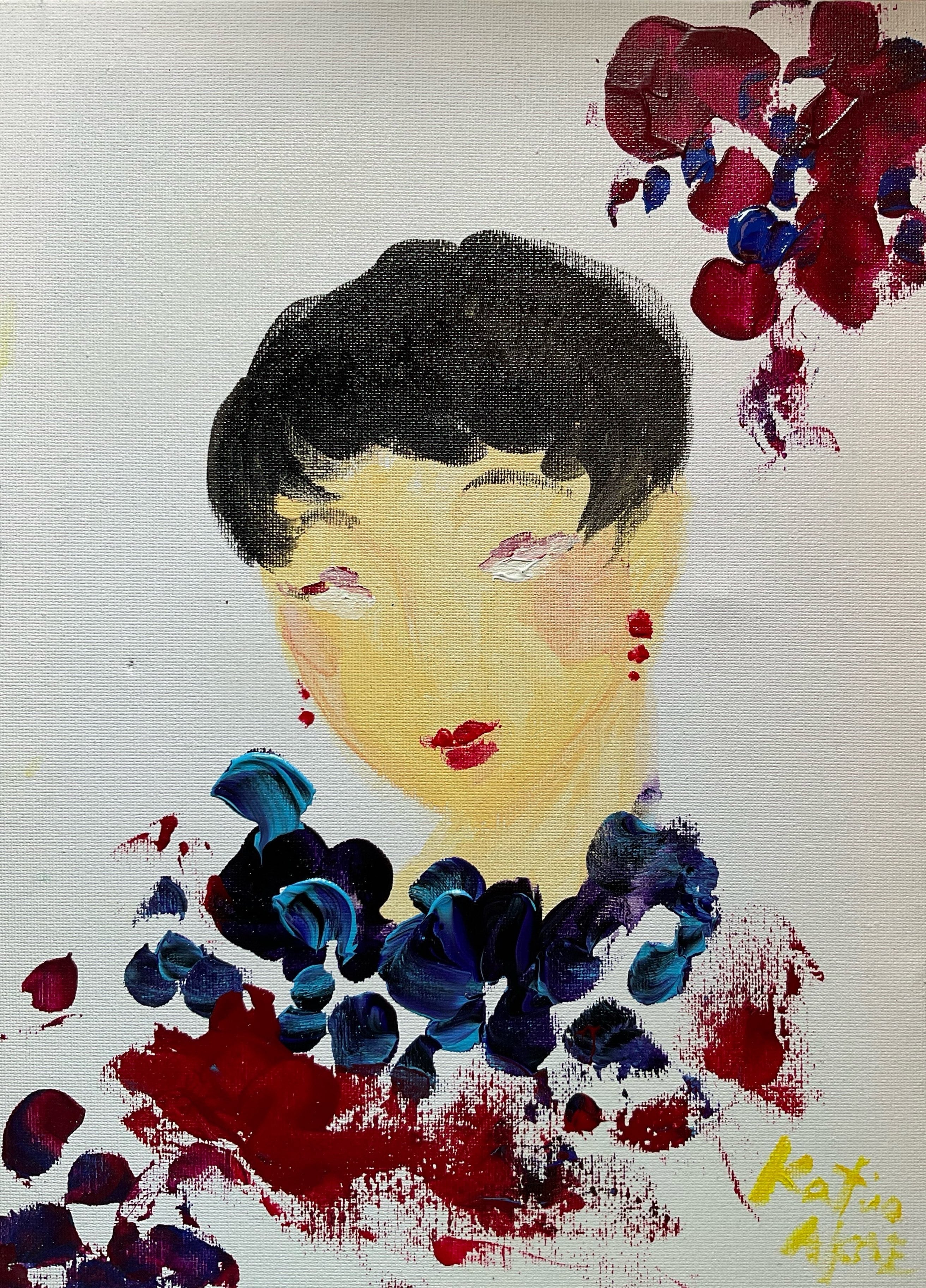 アクリル画, 女性肖像, ハルピン, ノスタルジー, 初恋, 異国情緒, 記憶の絵画, 赤江かふお, 即興絵画, 指描きアート, 混色技法, 多文化都市, 旧満州, 歴史と記憶, 柔らかな表情, 顔彩的表現, 抽象と具象, 都市の記憶, F4キャンバス, レトロモダン