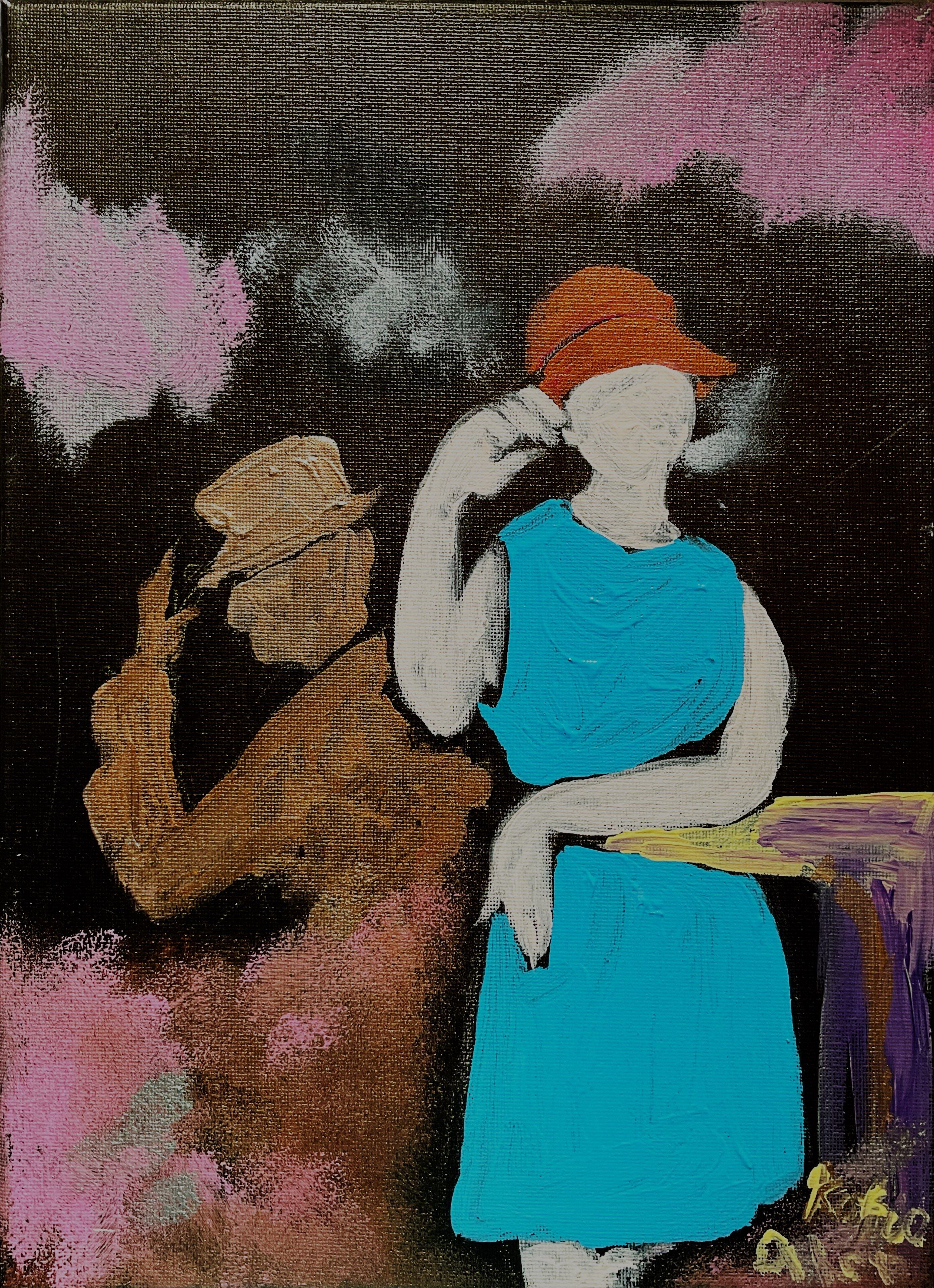 アクリル画, 即興絵画, 人物画, 感情の記録, 腐れ縁, ユーモア, アイロニー, 赤江かふお, 現代アート, カップル, 関係性, 無意識の記憶, 都市の人間関係, 影, 曖昧さ, F4キャンバス, 心象風景, 記憶の図像, 表情のない顔, コミカルな悲哀